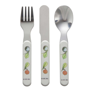Praktiskt och slitstarkt bestickset med kniv, gaffel och sked – perfekt utformat för små händer och munnar. Besticken ger barnet ett bra grepp och gör det enklare att äta själv på ett tryggt och bekvämt sätt.